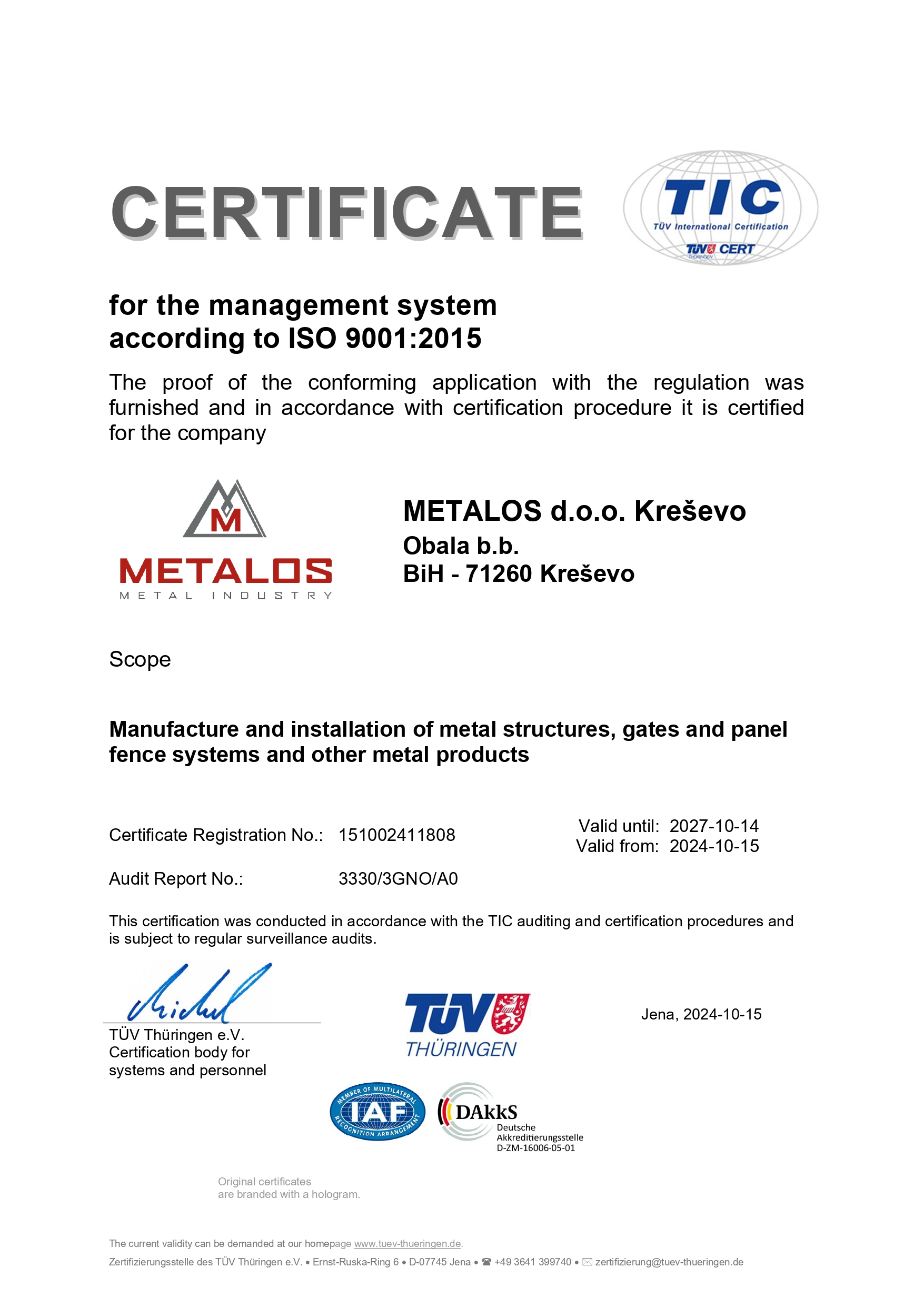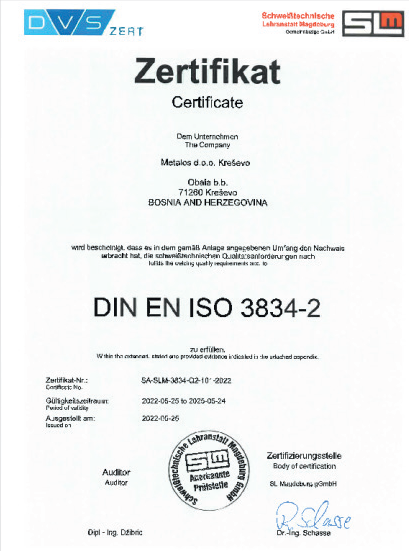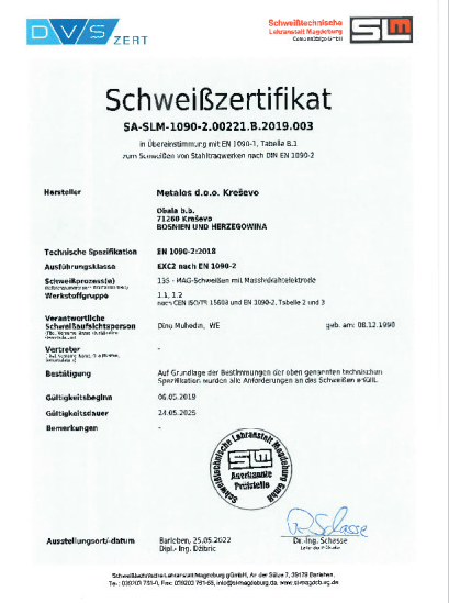Many years of experience and continuous investment in technology and staff are some of the postulates of the METALOS d.o.o. company